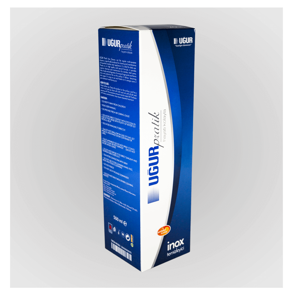 UĞUR Pratik Inox Temizleyici, diğer çok maksatlı temizleyicilerin aksine, sadece evlerde kullandığımız çelik yüzeyli ürünlerin temizlik ve bakımı için özel olarak üretilmiştir. Günlük kullanım için uygundur.